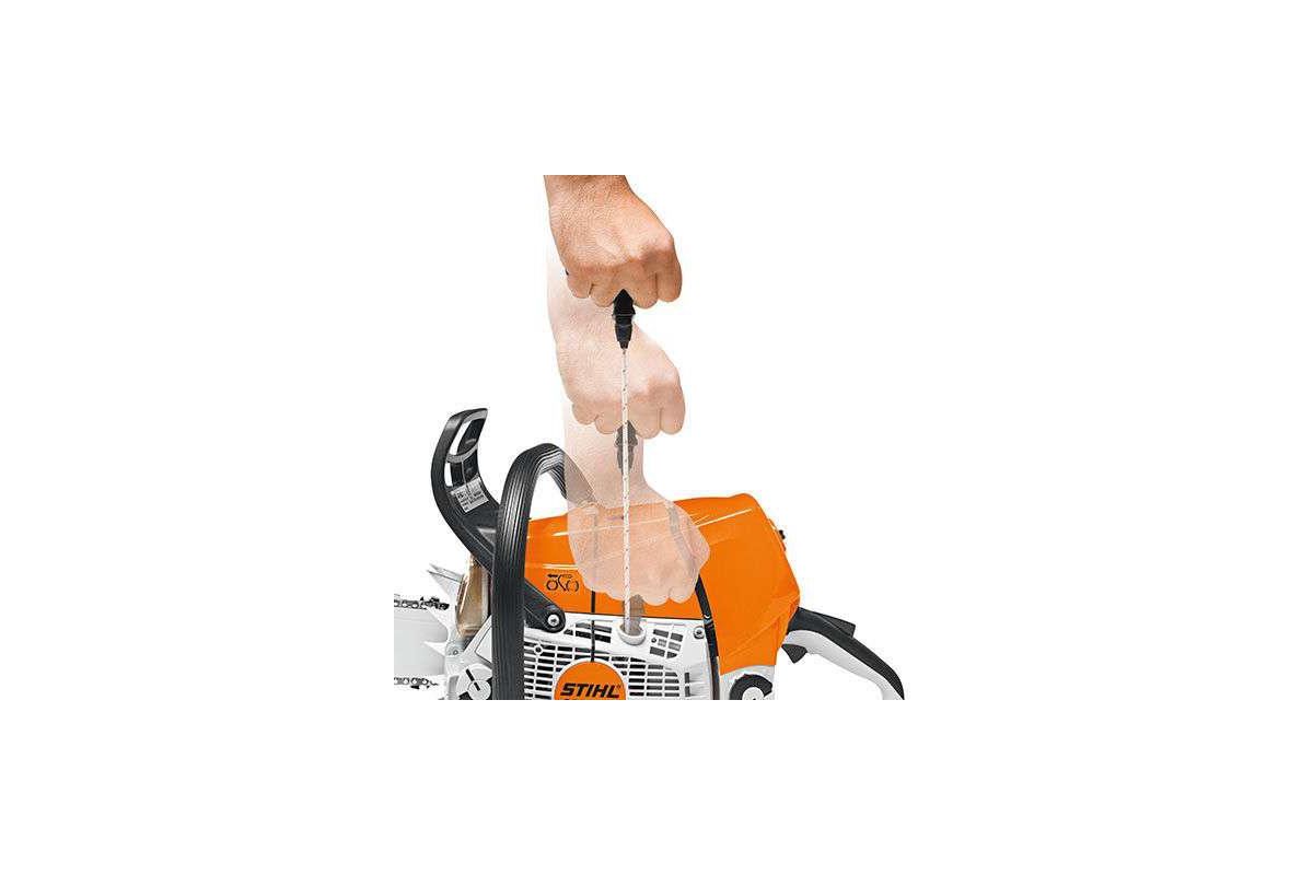 - Система смазки цепи Ematic - благодаря особой конструкции шины и цепи масло точечно попадает в требующие смазки места, что до 50% сокращает общий расход масла.
