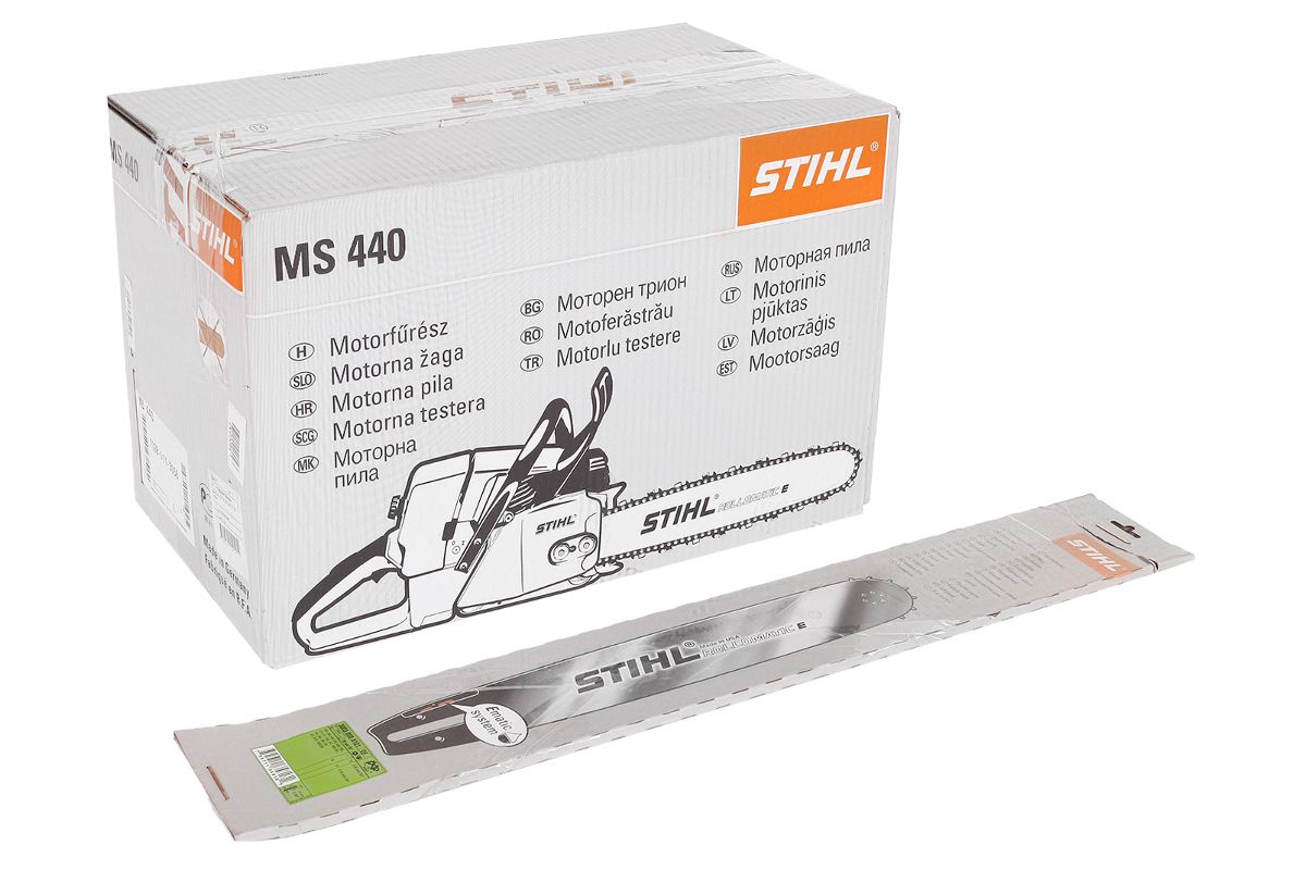STIHL MS 440 - профессиональная валочная бензопила мощностью 5,4 л.с. с длинной шиной – 18 дюймов. Антивибрационная система снижает нагрузки на руки, пусковое устройство ElastoStart делает старт плавным. Для бесперебойной работы двигателя в зимний период бензопила снабжена подогревом карбюратора, а благодаря автоматической смазке цепи расход масла становится более экономичным.