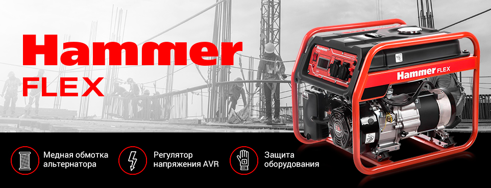 Бензиновый генератор Hammer Flex GN4000Е обеспечивает качественное питание электроинструментов, бытовой техники и прочих потребителей суммарной мощностью до 3,5 кВт.