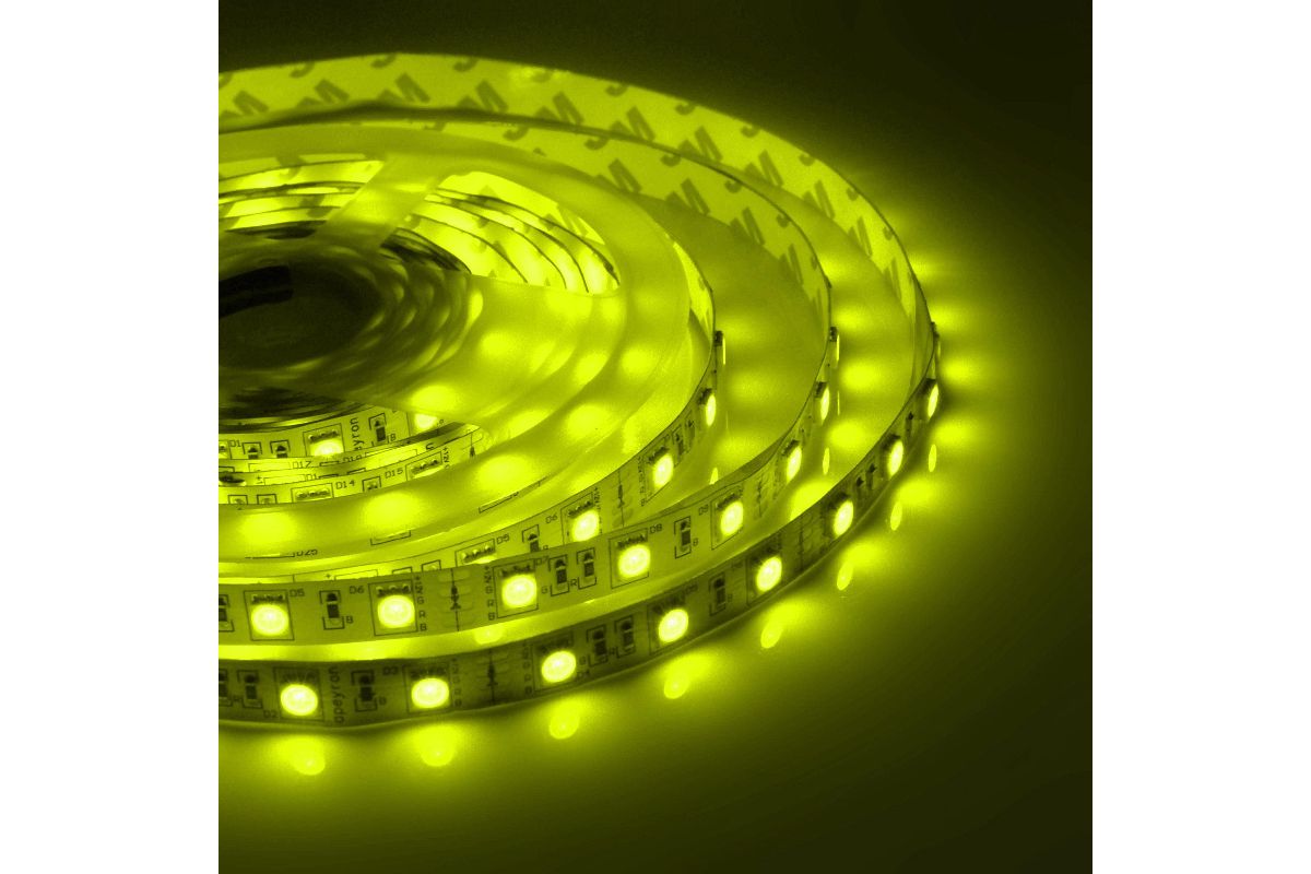 Светодиодная лента из линейки Стандарт с артикулом 00-75 работает от постоянного тока с напряжением 12В. Благодаря светодиодам smd 5050 излучающим световой поток равный 700 Лм/м* лента является прекрасным решением для организации ярких декоративных подсветок. Она подойдет для создания декоративного освещения на базе многоуровневых потолков, а также будет отличным выбором для освещения торгового оборудования или требующих большой яркости рекламных вывесок. По сравнению с лампами накаливания светодиодная лента эквивалентна лампам мощностью 70 Вт. Данная модель светодиодной ленты является многоцветной. Каждый светодиод такой ленты имеет 3 базовых цвета: синий, зеленый и красный. В зависимости от используемого контроллера можно получить до 256 различных оттенков свечения. При выборе светодиодной ленты важно учитывать такой параметр, как потребляемая мощность, чтобы правильно подобрать блок питания. У данной модели этот показатель равен 14,4 Вт на один метр. Степень защиты этого изделия соответствует стандарту IP67, что позволяет использование не только в местах с повышенной влажностью, но и кратковременное погружение под воду не более чем на 30 минут. Защитное покрытие выполнено из тонкой и устойчивой к воздействию влаги полимерной пленки. Это выгодно отличает данную светодиодную ленту тем, что она, в отличие от изделий, покрытых силиконом, будет сохранять свою яркость до 10 раз дольше. Отрезать светодиодную ленту можно в специально отмеченных местах, которые располагаются через каждые 50 мм. Компактные размеры светодиодной ленты с шириной 10 мм и основанием из гибкой, двухслойной, медной подложки дают огромное преимущество при создании любых дизайнерских фантазий.